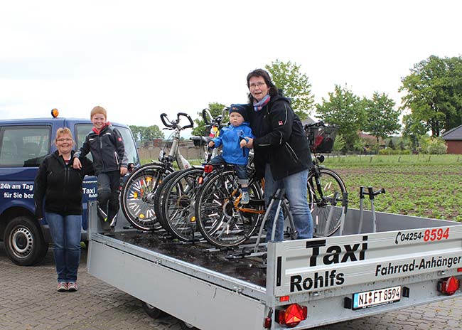 Wenn Sie eine Radtour planen, sprechen Sie uns an! Auf unserem Anhänger haben wir Platz bis zu acht Rädern. So bekommen wir auch größere Radfahrergruppen zum Startpunkt und auch wieder zurück.